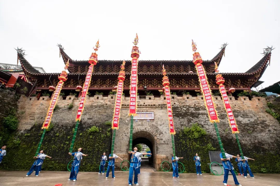 (林熙 攝) 通仙門前,一批挑幡傳承人每日不辭辛勞練習著技藝。建甌挑幡,2005年成為福建省首批省級非物質文化遺產,2008年被列入第一批國家級非物質文化遺產名錄。它始于明末,至今已有340多年的歷史。民族英雄鄭成功率領大軍橫渡海峽,收復臺灣凱旋之時,百姓連日備宴慶賀,將士們則將帶回的軍旗捆在長竹竿頭,盡情揮舞,以表示對壯烈捐軀的弟兄們的懷念之情。此后每年均以此禮節告慰英烈,世代傳承,并演變成當今建甌民間特有的挑幡習俗。