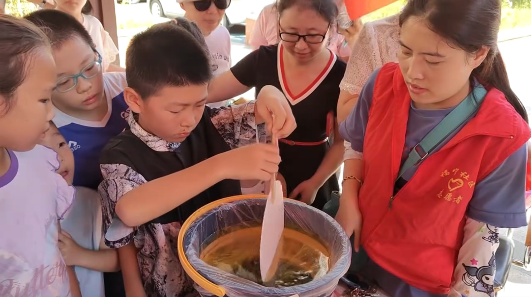 “制福袋”“做漆扇”是孩子們最喜愛的活動,吸引了眾多居民帶著孩子熱情參與。在大家的巧手制作下,一個個形態飽滿、象征幸福的福袋和一把把色彩斑斕、寓意吉祥的漆扇陸續呈現出來,令人愛不釋手。大家紛紛拿著自己的“作品”合影留念。