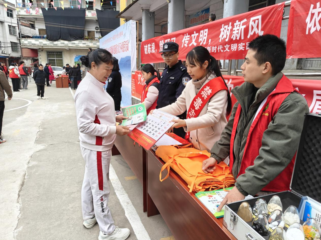 文化惠民不停步,普法宣傳護平安。文藝匯演期間,鎮綜治辦、派出所等部門在廣場設立宣傳展臺,開展反詐、禁毒、道路交通安全集中宣傳。工作人員通過發放手冊、答疑解惑、講解案例等方式,普及電信網絡詐騙套路,提醒群眾守好錢袋子;細致講解毒品危害及識別技巧,倡導全民禁毒;耐心宣傳交規,重點強調春節前騎乘電動車戴頭盔、不酒駕醉駕、不超員超載等注意事項,筑牢安全防線。