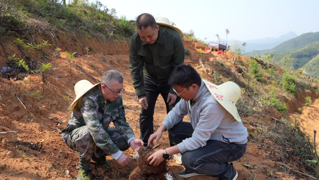 與以往利用松樹采伐后留下的樹兜“見縫插針”式種植不同,眼前的這片茯苓基地采用的是段木種植模式。在科特派的帶領下,林農將松林改造提升行動中采伐下來的松樹樹干鋸成段木,整齊排列埋入土中,再接種菌種。這種模式不僅實現了松林改造剩余物的集中利用,使其變成了培育中藥材茯苓的“黃金培養基”,更讓原本零散、低效的林下利用方式走向規模化、集約化。