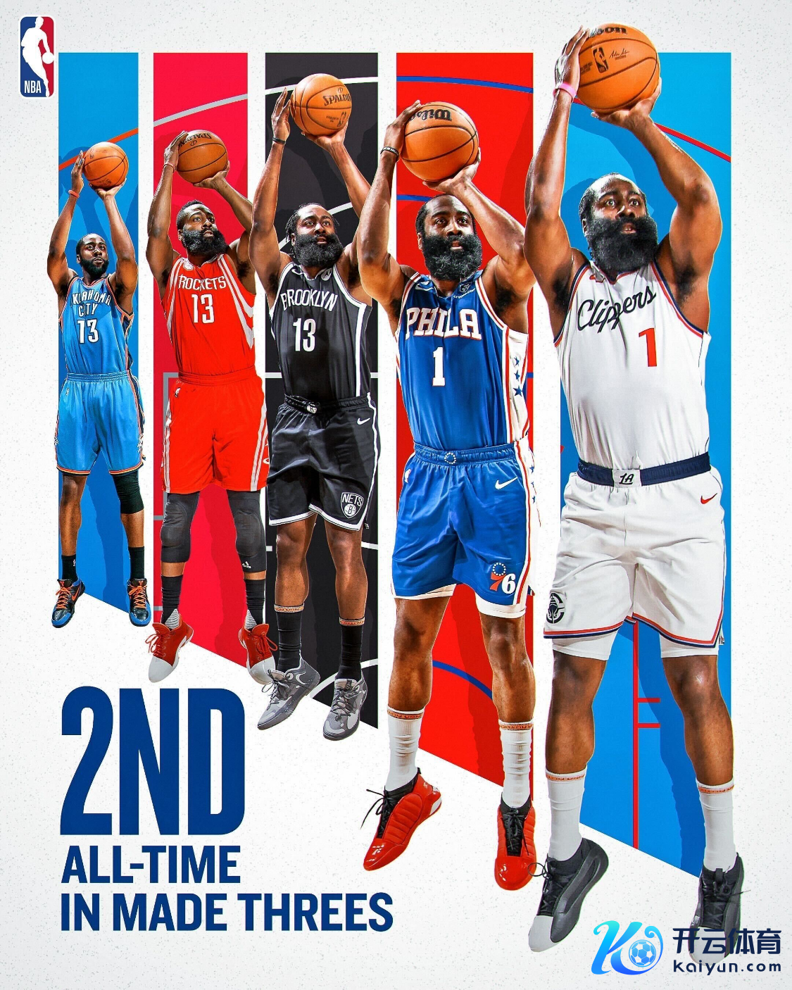 北京时代11月18日,快船长场对阵爵士的比赛,哈登生计惯例赛三分掷中数,厚爱高出雷-阿伦的2973记三分,独占NBA惯例赛历史三分榜第二位迎来里程碑。哈登如今仅需要仰望库里的3782记三分,而哈登下一目标是冲击生计3000记三分里程碑。NBA官方晒出哈登不同期期效率的投篮汇总海报,而快船官方雷同晒出海报祝愿。